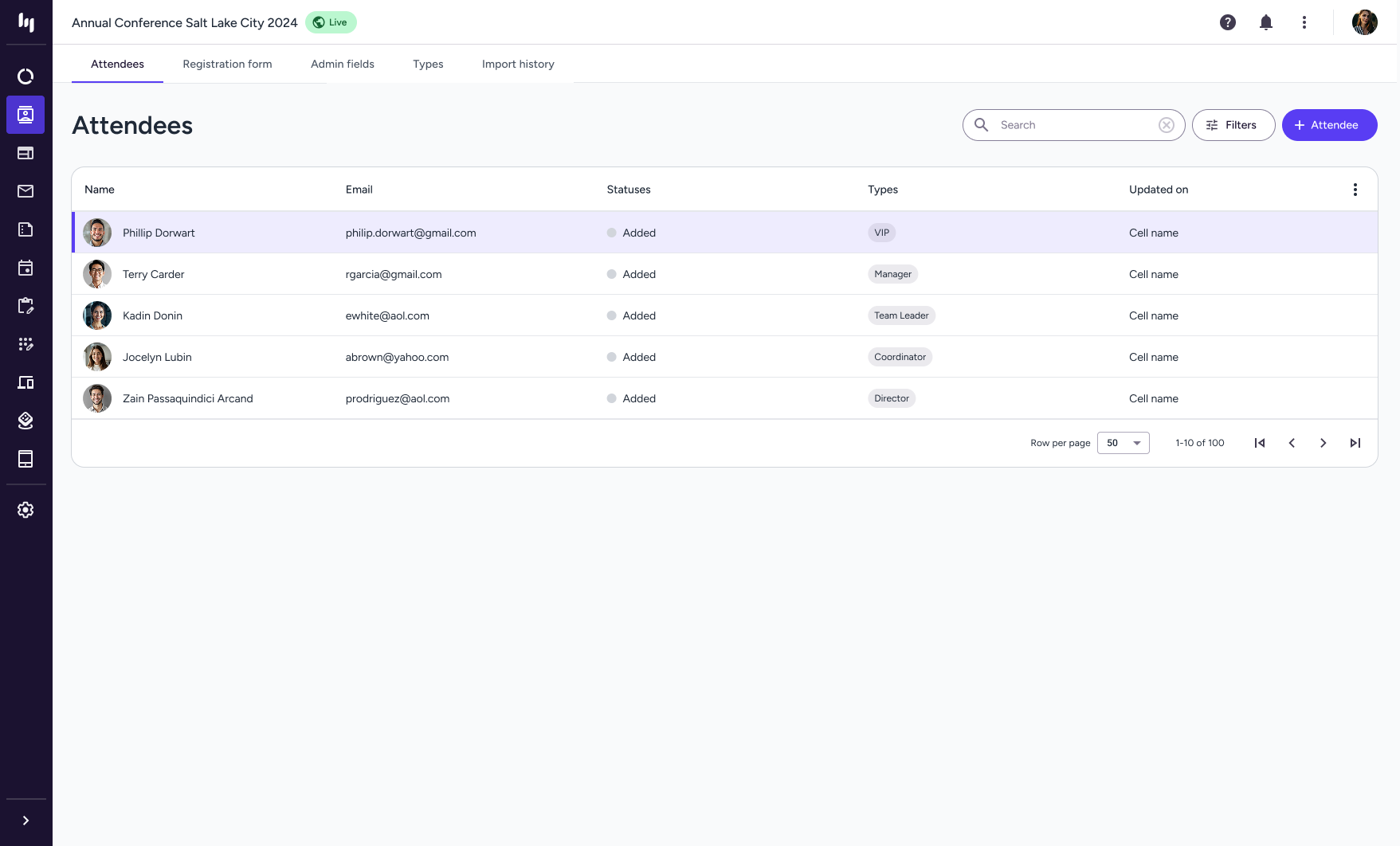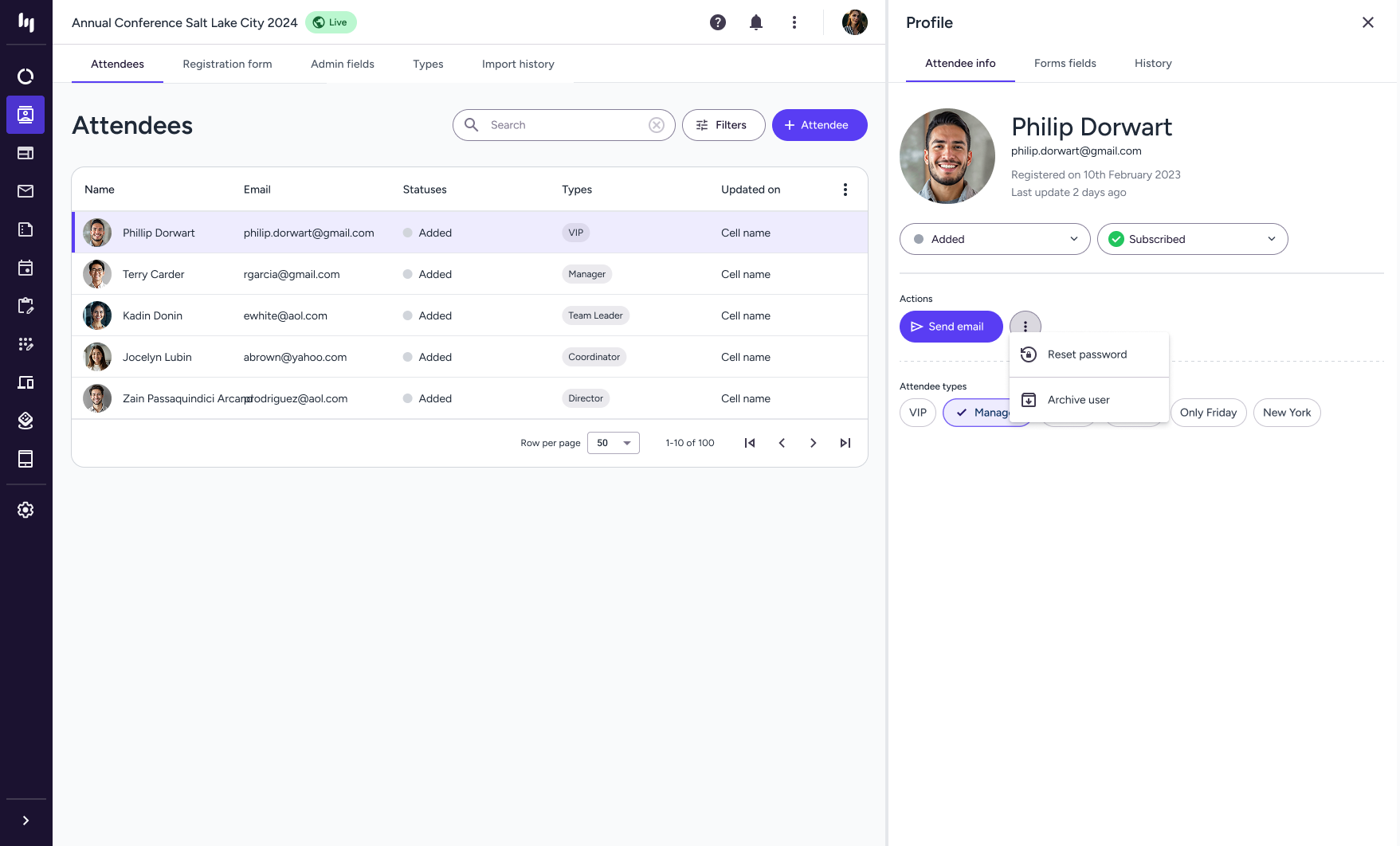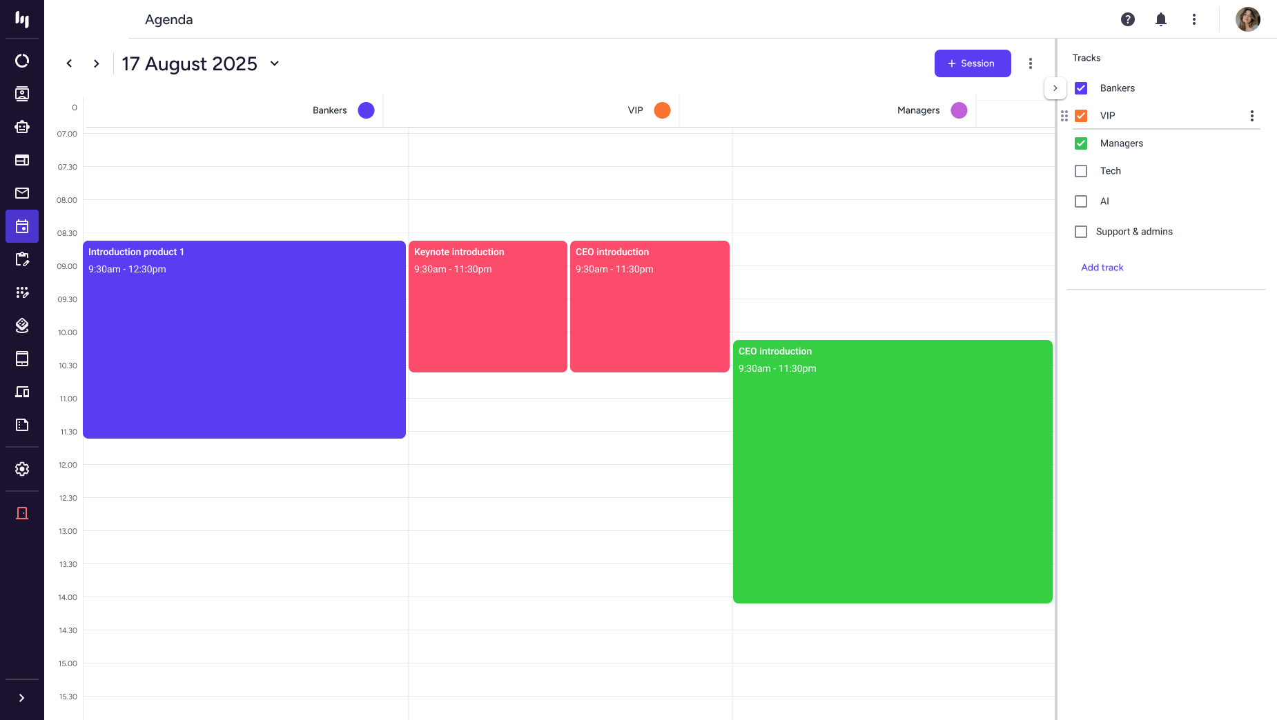 B2B user: These users have full access to multiple features with a paid license. They are responsible for managing all their corporate events.