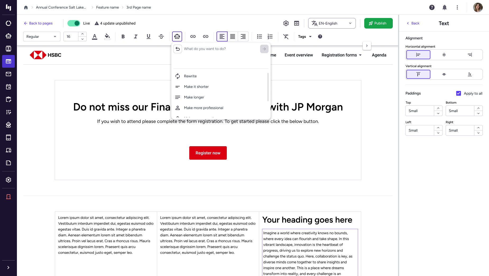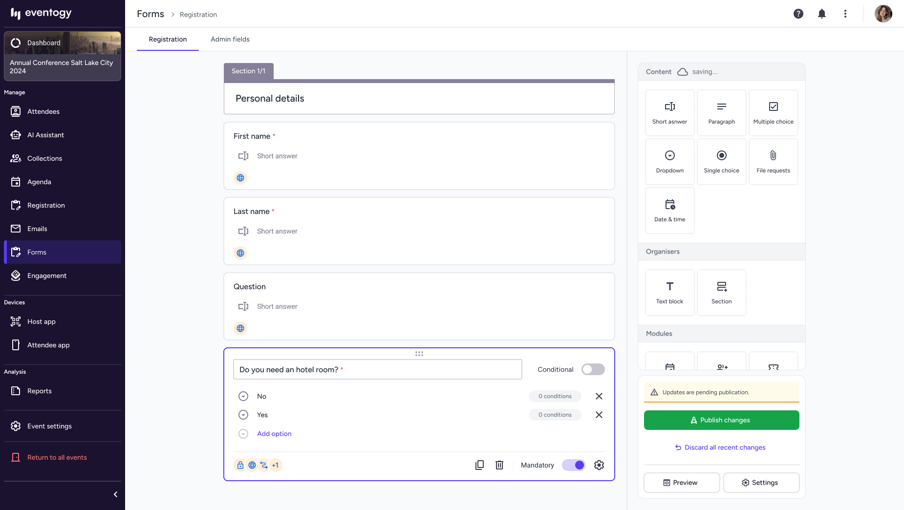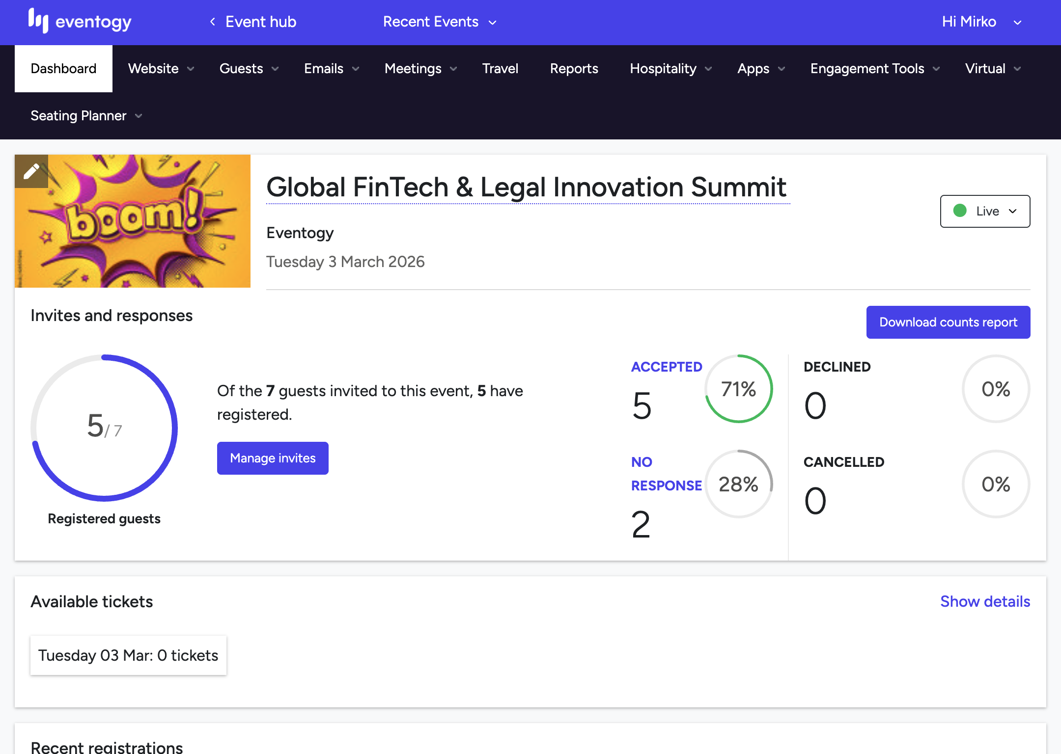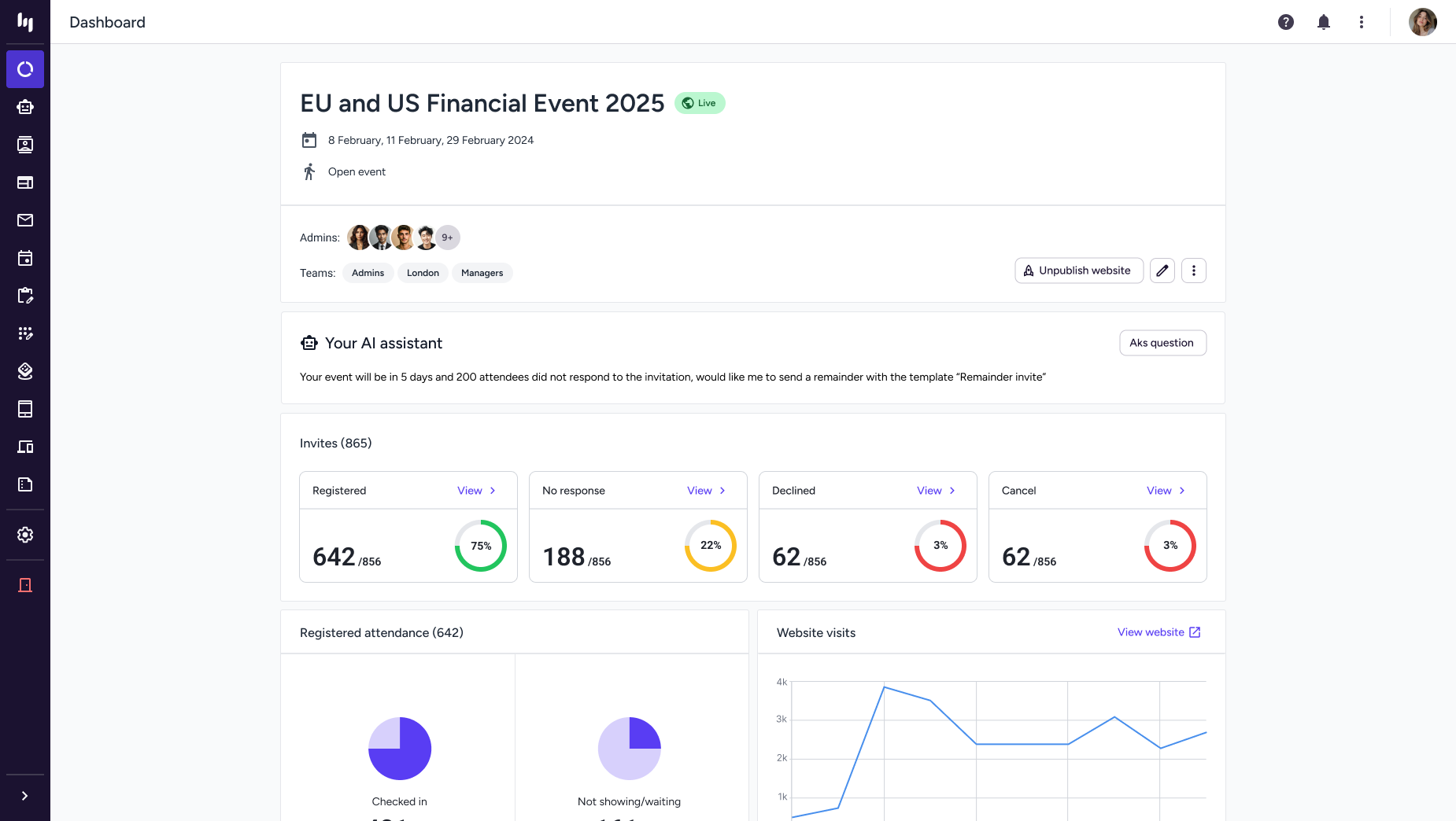 B2B user: These users have full access to multiple features with a paid license. They are responsible for managing all their corporate events.